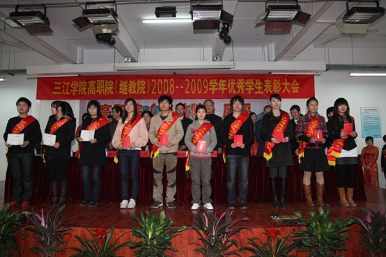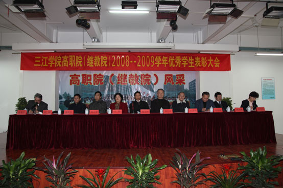 11月26日下午,best365官方网站东校区校园,拱门竖立,彩旗飘扬,处处洋溢着欢快祥和的气氛,高职院(继教院)迎来了一年一度的优秀学生表彰大会。出席我院2008-2009学年优秀学生表彰大会的有best365官方网站理事长、校长、党委书记陈万年,常务副校长骆志斌,副校长叶俊、王芝庆、陈云棠、王志强、董新华、笪佐领,校长助理、高职院和继教院院长郭彬以及高职院(继教院)的师生代表。大会由高职院(继教院)徐肇杰副院长主持,表彰了我院2008-2009学年1名国家励志奖学金获得者和165名三好学生,321名奖学金获得者,207名优秀学生干部,文娱、体育、卫生积极分子,以及在校第十六届田径运动会上取得优异成绩的运动员。