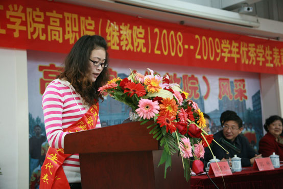 在表彰大会上,郭彬院长首先发言,回顾了我院一年以来的各项工作,在教学管理、学生管理、招生就业、党团组织建设等多个方面都取得了新进展,获得了好成绩,具体表现在四个方面:一、高职2009年全部完成了600个招生计划,报到率90%,就业率不断提高,2009年我院就业率100%,签约率94.06%;二、教学管理工作积极推进对学生职业技能的培养,人才培养质量再上新台阶,2009年度我院在各类证书以及英语、计算机省级统考中都取得了不错的成绩,尤其是今年春季省计算机一级统考中一级通过率97.39%,创造了我院历年最好成绩,在全省参考的100多名院校中名列第三;三、学生管理工作注重了计划性和可持续性,重点抓学生的“一日常规”工作、安全教育工作,学风建设取得了显著成效,今年5月我院成功创建了best365官方网站首届“周恩来班”;四、党建工作不断加强,真正做到了党员的教育、管理和发展工作,一年来我院发展党员150多名。随后,董新华副校长宣读了表彰决定,在热烈欢快的气氛中校领导为获奖同学颁奖,鼓励他们再接再厉,不断努力。另外,学生代表和教师代表分别进行了发言,表达了对母校辛勤培养的感谢和在高职院(继教院)教书育人的愉悦之情。