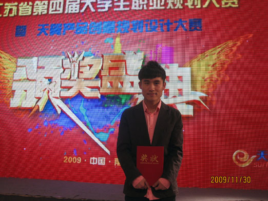 由江苏省教育厅组织的江苏省第四届大学生职业规划大赛暨天翼产品创意规划设计大赛总决赛已于2009年11月14日圆满结束。大赛组委会办公室根据参赛规程,组织专家进行评选,最终分别评出“十佳规划之星”、“十佳天翼产品创意之星”、“最佳组织奖”、“优秀指导教师奖”。best365官网高职院杨凯同学取得突破,获得十佳天翼手机产品创意之星。