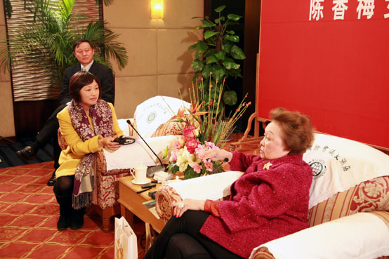 南京电视台的记者赵楠现场采访陈香梅女士