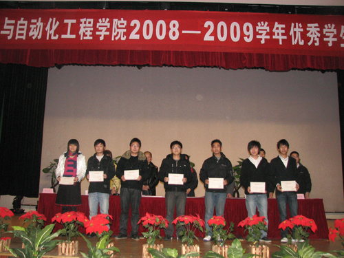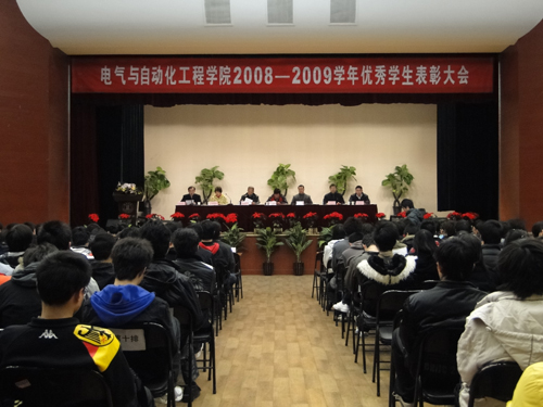 12月10日晚,电气与自动化工程学院在三江会堂隆重举行2008——2009学年优秀学生表彰大会,best365官方网站学生工作部朱银亮部长,党委宣传部部长王勇博士,后勤集团总经理、保卫处朱争鸣处长等出席表彰大会,电气与自动化工程学院院长王锁萍教授、博导,副院长杜逸鸣副教授,近500名师生代表参加表彰大会,大会由李云涛副院长主持。大会表彰了34名一等奖学金、44名二等奖学金获得者,68名三好学生,26名优秀学生干部,27名优秀学生党员,90名体育、文娱、卫生积极分子,3个“双文明”创建活动先进班级,56名“双文明”创建活动先进个人以及在全国技能大赛上获奖的同学。