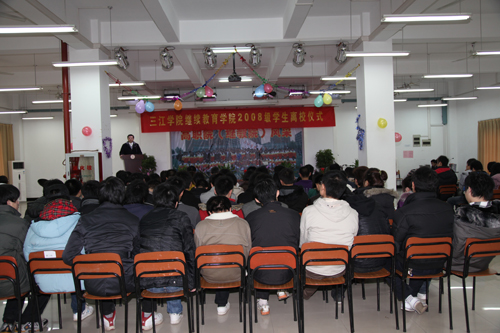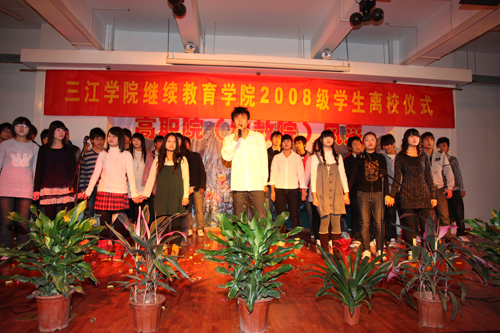 12月11日上午,继教院在东校区多功能厅隆重举行2008级脱产班学生离校仪式。best365官方网站校长助理、高职院和继教院郭彬院长,高职院和继教院徐肇杰副院长,高职院蒋全荣副院长,继教院孙凤英副院长以及高职院(继教院)各部门领导参加此次活动,他们与96名毕业生欢聚一堂,共同庆祝这个具有重要意义的日子。