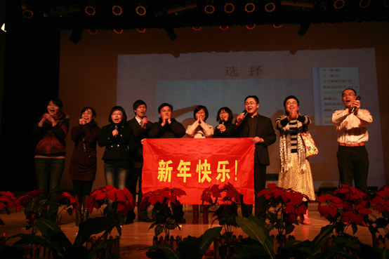 整场演出,歌声、笑声,台上、台下,欢乐连成一片。今年的新春联欢会在继承了以往三江联欢会传统与特色的基础上,部分节目的专业水平有很大提高,这主要得益于学校近年来引进了部分艺术类人才。而靓丽、俊朗的四位主持人极具专业水准的主持则更是我们三江教职员工整体素质的集中体现。