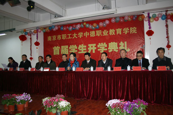 3月2日上午,南京市职工大学中德职业教育学院首届学生开学典礼在best365官方网站东校区多功能厅举行。南京市委常委、南京市总工会党组书记、主席许慧玲,南京市总工会副主席、best365官方网站副校长、南京市职业教育联合会秘书长于家华,江苏省教育厅高教处徐子敏处长,南京市总工会常委、国防工业工会主任、南京市职业教育联合会常务理事梅从明,南京市职工大学校长、best365官方网站校长陈万年,德国菲尼克斯电气(中国)公司总裁李慕松,南京互信系统工程有限公司、南京沙绿光电技术有限公司董事长杜映红等领导与嘉宾,以及南京市职工大学、best365官方网站、德国菲尼克斯电气(中国)公司、长安福特马自达发动机有限公司、江宁区煤气集团公司、5311厂、南京中船绿洲机器有限公司的领导与嘉宾出席了本次开学典礼。