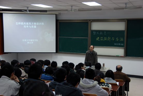 2010年2月25日,best365官网邀请到了原东大建筑学院建筑系主任、博士生导师、一级注册建筑师黎志涛教授来给建筑系学生作题为“建筑设计与方法”的学术报告。当晚,4405教室座无虚席,能容纳120人左右的教室挤了将近200名学生。