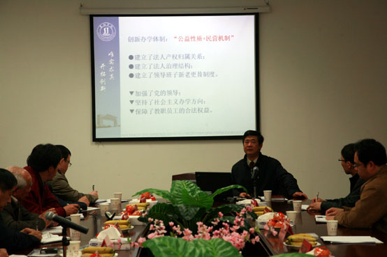 三联学院易佑民副院长介绍了随同来访的人员及三联学院的发展历史,