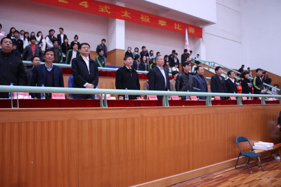 陈云棠副校长为本届比赛致开幕词,他说:“太极拳运动是中华民族传统文化的结晶,有着丰富的文化内涵,不仅强身健体、增强娱乐,还可以陶冶情操、开启智慧,更可以丰富课余生活,是加强校园文化建设的一项主要活动。”最后他希望best365官网将太极拳这项传统体育运动发扬光大,并祝愿本次比赛取得圆满成功。随后,董新华副校长宣布best365官网第二届太极拳比赛正式开始。