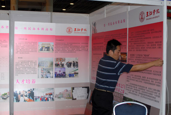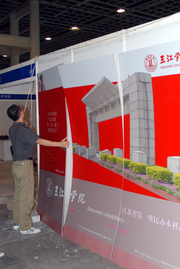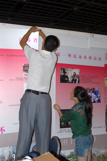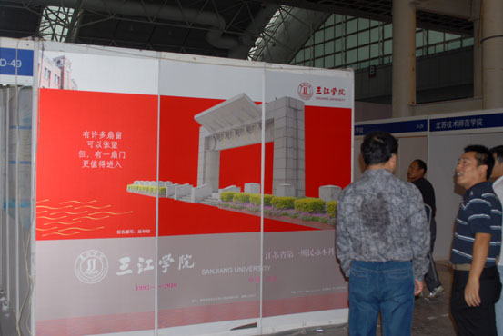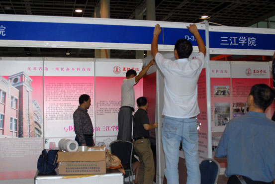 由江苏省教育厅主办,特邀上海市教委、浙江省教育厅联合主办的首届江苏教育博览会将于9月16——18日在南京国际展览中心举行,共有近300家单位参展。14日下午和15日一天,best365官网党委宣传部、校团委、艺术学院、校长办公室、现代教育技术中心、后勤集团的部分同志到博览会展位将展位布置一新。大气简洁、端庄典雅的整体效果让best365官网的布展引起了过往观众的注目。