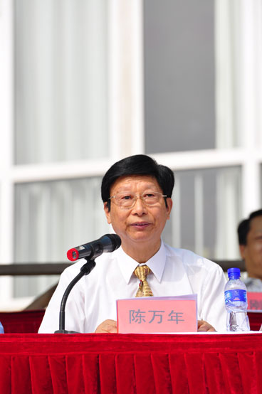 热烈的掌声响起来,理事会理事长、校长、党委书记陈万年教授发表重要讲话。陈万年校长说:首先,我代表学校理事会、校行政、校党委和全校18000名师生员工,对2010级新同学成为三江大家庭成员表示最热烈的欢迎!从9月6日到今天,你们进行了为期14天的军训,同学们发扬不怕苦、不怕累的精神,严格遵守纪律,克服了各种困难,圆满完成了军训任务,强健了体魄,磨练了意志,在你们的人生旅程中刻下最难忘的记忆。刚才观看了同学们的汇报表演,分享了你们用意志、汗水、磨炼和劳累创造的果实,见证了你们的口号嘹亮、步履强健与意志坚强。军训结束了,就要和十多天来朝夕相处、可爱可敬的教官们说再见了,我们用我们最热烈的掌声向部队首长和教官们表示衷心的感谢,教官同志们,你们辛苦了,学校和我们在座的每一位新生感谢你们!”