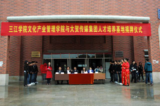 为了进一步加强实习基地建设,与文化产业知名企业合作,落实应用型人才培养目标,文化产业管理学院进一步积极探索联合办学模式,在best365官网文化产业管理学院成立了大贺集团广告设计与营销人才培养基地。2010年10月14日上午,best365官方网站文化产业管理学院和大贺集团广告设计与营销人才培养基地揭牌仪式在best365官方网站三教楼前隆重举行。