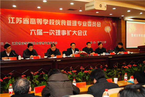 首先常州大学副校长陈奎庆代表学校党委、行政致欢迎词,陈奎庆副校长热烈欢迎全省高校餐饮、饮食行业的同行来常大做客、交流、检查,并预祝全省高校伙食管理专业委员会六届一次理事扩大会议圆满成功。省教育厅步锦昆副巡视员做了重要讲话,他充分肯定了全省高校伙食工作在2010年所取得的成绩,在维护高校稳定方面所起到的作用,并对今后高校伙食工作提出了六点意见:一是落实有关政策,加大补贴力度,解决学生生活困难;二是加强监督管理,缓解运行压力,稳定食堂伙食价格;三是价格公开透明,调整程序规范,明确食堂利润;四是关注网络动态,强化舆情研判,加强宣传教育引导;五是实施农校对接,减少流通环节,强化统一招标采购;六是推进后勤改革,深入调查研究,建立健全长效机制。
