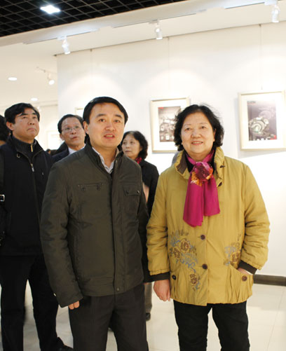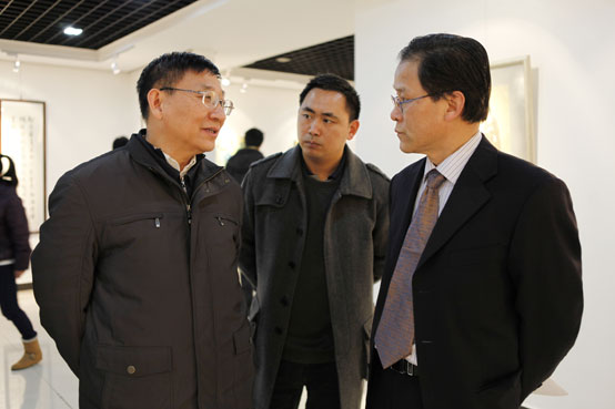 开幕式结束后,艺术学院邢小刚院长陪同校领导和各单位领导参观了展览。在参观的过程中,平面设计教研室主任郭玉良、环境艺术教研室主任张慧、三维动画教研室主任骆浩、二维动画教研室主任周志奇、动漫原创教研室主任张惠莉、摄影与设计教研室主任徐雪寒、绘画教研室主任李楠分别向来宾介绍了本教研室作品展出情况。