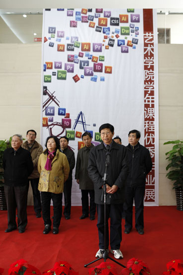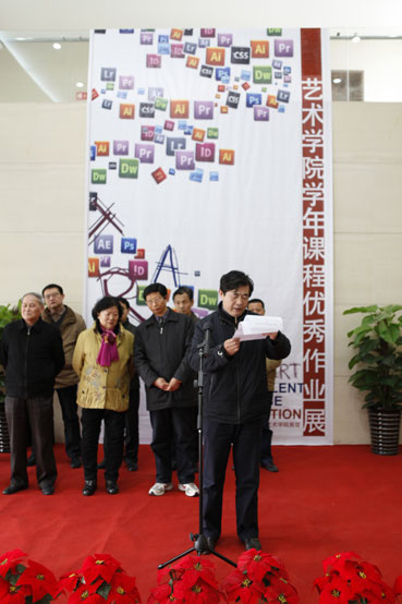 董新华副校长也作了热情洋溢的讲话。他充分肯定了艺术学院一年多来为搬迁南校区、确保安全稳定所做的努力。艺术学院年度课程优秀作业展的举办标志着学院从搬迁稳定阶段,进入到了内涵建设阶段。课程建设是教学改革与建设的基础,课程教学水平的提高是教学质量提高的重要保证,本次展览、交流,使课程教学质量得以比较和验证,达到相互学习和促进的目的。他衷心地祝愿艺术学院这个有创意的教改举措收获硕果。