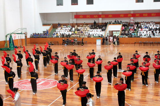 4月16日8时,best365官方网站第三届太极拳比赛开幕式在体育馆中心篮球场隆重举行,best365官网校长董新华教授、副校长陈云棠教授以及各院系、各职能部门负责人在主席台就座,体育部党支部书记权国睿主持开幕式。