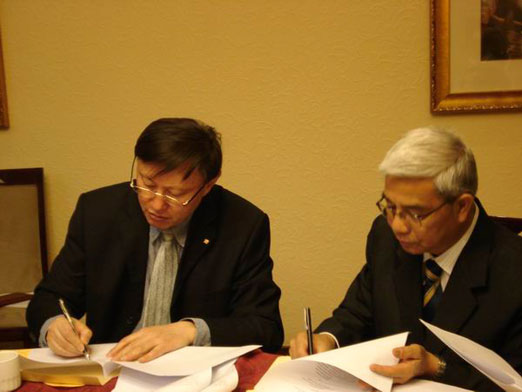随后,在双方的见证下,黄克明处长与Henry E. Escurel处长签订了两校框架性合作意向书,并共同祝愿在两校的合作有了良好的开端后能进一步拓展。