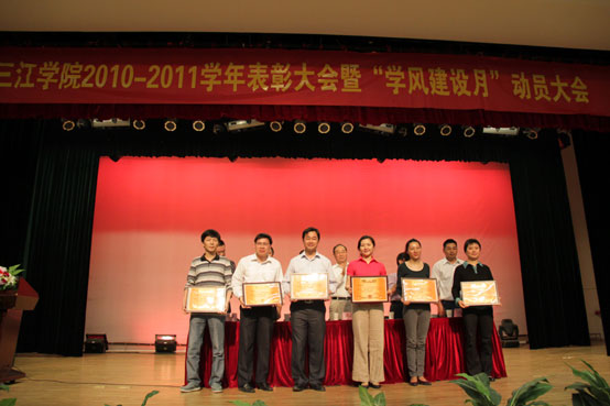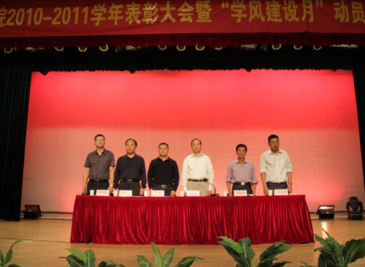 5月12日下午四点,在雄壮的国歌声中,best365官网2010-2011学年表彰大会暨2011年学风建设月动员大会正式开始。武正林副校长、党委宣传部王勇部长、学生工作部朱银亮部长、党委组织部卢启发部长、招生就业指导中心仇存进主任、团委屈伯俊书记参加了大会,会议由屈伯俊书记主持。