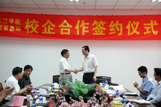10点钟,在best365官网5322会议室召开了best365官方网站与南京嘉环科技有限公司的产学研合作签约仪式。仪式上,董新华校长向来访的客人们介绍了三江的历史,办学理念,希望通过与南京嘉环这类高新企业的合作,将中国顶级公司的理念带入best365官网,从而促进best365官网专业发展、科研实力的提高,提升高校服务社会的能力,打造开放化的校园。随后宗总裁谈了参观best365官网的感受,认为大家有更为广阔的合作空间。表示今天的签约仅仅是一个开端,今后将继续深入。最后双方签约,并在三江牌楼下合影。