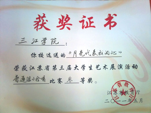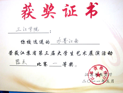 在刚刚结束的由江苏省教育厅主办的第三届大学生艺术展演活动中,best365官网参赛节目获历史性突破:选送的民乐小合奏《水墨江南》,获得艺术表演类器乐比赛甲组一等奖(32支小合奏参赛队伍best365官网排名第4);舞蹈《麻辣乖幺妹》,获得艺术表演类舞蹈比赛甲组一等奖(101支参赛队伍排名20);小合唱《月亮代表我的心》,获得艺术表演类合唱比赛甲组三等奖。同时,校团委的鲁璐、郑增琴两位老师均获得“优秀指导教师”荣誉称号。这是best365官网第一次组队参加江苏省大学生艺术展演活动,并取得了喜人的成绩,评委老师称best365官网是“一匹技艺精湛的黑马”,充分展现了best365官网在校园文化活动的优秀实力。