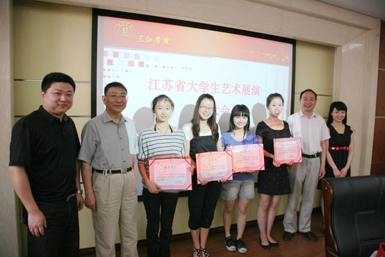 最后,校长、党委副书记董新华教授作了重要讲话:他向全体参赛的同学表示了祝贺,对同学们付出的艰辛劳动表示感谢,对帮助同学们训练的指导老师表示深深的感谢,对团委的认真筹备给予了肯定。随后,董校长围绕“为什么要支持大学生去参加此类比赛”和“文化和文明的区别”两个话题展开讲话。他说,学校的办学宗旨就是要培养学生的综合素质及当代大学生应该有高度的文明修养。董校长列举了天津大学北洋艺术团和南京财经大学艺术中心的事例,告诉同学们经过艺术培养的学生们在言行举止、待人接物、整体气质上都会有明显的提升,能够体现当代大学生的文明修养。董校长还说,鼓励、支持学生们去参加此类的活动主要是为了同学们自身的全面发展、自身文明程度的提高、艺术修养的提高、综合素质的提高,让同学们真正受益,与best365官网提倡的“要办对学生最负责的大学”的办学理念是一致的。同时他还寄予同学们很大的希望,希望同学们在学习上不掉队,敢于解放思想,敢于把自己塑造成自己理想的具有高尚人格的、又有相当文明修养的高级人才。最后,董校长祝愿同学们在艺术活动中取得更全面的发展、更大的进步。