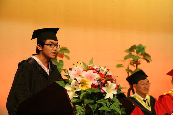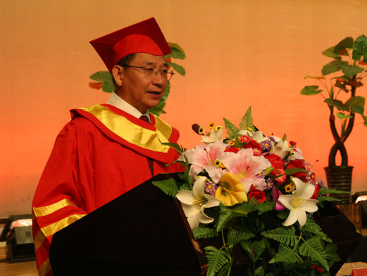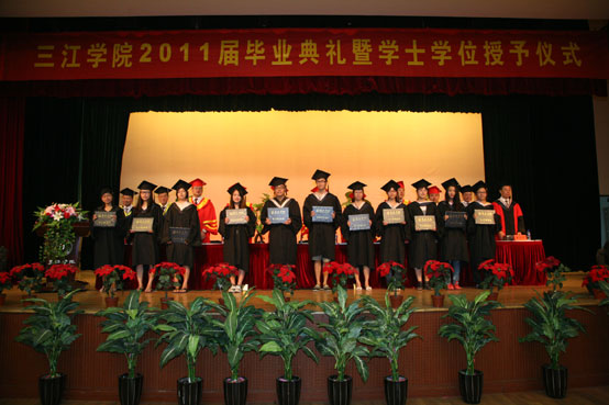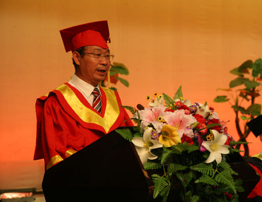 仪式之后,校长董新华教授发表讲话。董校长对顺利毕业并获得学位的同学表示祝贺。他用数据回顾了best365官网历届毕业生人数发展情况,1995年best365官网有了第一届毕业生,到目前为止已经有17届毕业生。董校长说,今年的毕业生创造了历届以来学习质量最高的一届,本科四级英语达标率为75%;115人考取研究生,占本科毕业生总数的3.55%;学生党员占全部毕业生的27%;本届毕业生初次就业率大大超过了省政府的要求,截止今年6月17日,已达83.78%;自主创业率、出国率等都相对较高,因此,本届人才培养质量是高的。同时,同学们的内在综合素质也得到很大提升,学生的“自强、自立、自主”的精神较入学时大大提高。学生党建、社团活动空前活跃,大学生维权中心的自主管理模式,成为团中央基层团组织建设示范单位,而在第三届大学生艺术展演中best365官网取得了傲人成绩,这些都离不开同学们的努力。董校长对同学们的努力、老师们的奉献、及三江全体员工的付出表示衷心感谢。最后他向即将离别母校的学子们提出五点希望:第一就是要孝敬父母,回报社会。他建议同学们把第一个月工资的一部分拿出来回报父母,并用实际行动回报社会;第二就是要终身学习,不断进取。董校长说,大学只是一个小课堂,社会才是一个大课堂,同学们要抱着终身学习的态度,这样才能不断进取,有所作为;第三,踏实做事,诚信做人。文凭、证书都是暂时的,真正能持久的是诚信、踏实的做人态度,同学们要认认真真做好每件事,要做一个有强烈社会责任感的人,唯有诚信、踏实做人,才能获得大成功;第四,百折不挠,勤奋刻苦。同学们在生活不顺利的时候不能迷茫,在困境中不能自暴自弃,要有一种百折不挠,勤奋刻苦的精神;第五就是要关注母校,共同发展。董校长说,明天同学们就要离开母校,但同学们永远都是三江的学子,要永远关注母校的发展,明年是三江建校20周年,欢迎同学们回母校看看,同学们是三江的“名片”,三江的事业将会因同学们的努力奋斗而更加辉煌。董新华校长最后满怀深情地祝毕业生们顺利、健康、快乐!