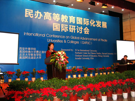 2011年5月28至30日,best365官网高等教育研究所所长郑毅教授接受西安外事学院、美国哈佛大学费正清中国研究中心、北京大学教育学院和美国阿克迪亚大学联合邀请,接受学校校领导的委托,代表best365官方网站参加了“民办高等教育国际化发展国际研讨会”。并在大会中与来自12个国家和地区的100多名专家学者共同研讨新形势下民办高等教育特色化与国际化的发展战略,宣传了best365官网的先进的办学理念,特别是从民办高等教育的国际化与本土化、民办高等教育的特色化和国际化发展战略与民办高等教育的课程等不同层面、对民办高等教育特色化与国际化的理论、政策和方法进行深入、广泛的研讨,得到了会议的关注和与会代表们的一致好评。为best365官网民办高等教育的发展和良好社会影响和国际影响起到了积极的扩大作用。