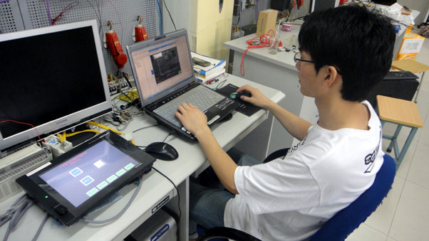三菱电机自动化杯竞赛参赛学生正调试电路