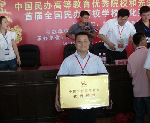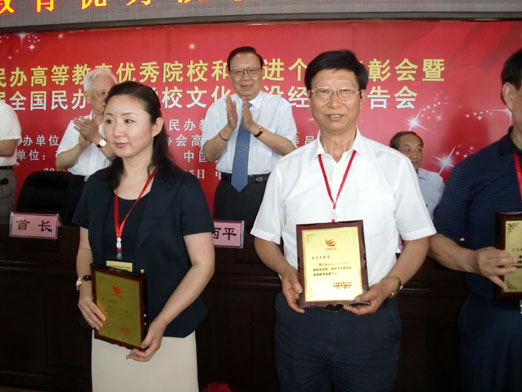 领取了中国民办高等教育优秀院校的相关奖牌