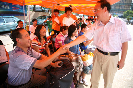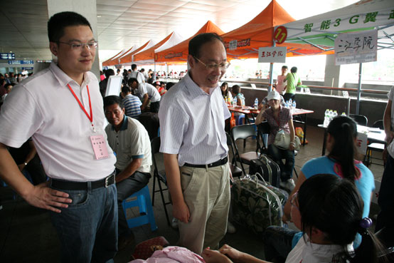 接站志愿者们的付出与辛劳牵动着best365官网领导们的心,为了表达对接站志愿者们的慰问与关怀,3日下午,在学生工作部副部长屈伯俊老师的陪同下,副校长武正林教授前往接站点,亲切慰问了接站志愿者。武正林副校长详细询问了志愿者们的接站情况,问他们累不累,辛苦不辛苦,等等。武正林副校长还与候车的新生家长进行了亲切交流。当得知此项志愿活动是由学联组织安排时,武正林副校长对学联的干部和同学的组织协调能力大加赞赏,他鼓励同学们利用这样的志愿服务活动,多多锻炼自己的组织、生活及交际能力。最后,他嘱咐大家多喝水,注意避暑,劳逸结合,平平安安地做好接站工作。