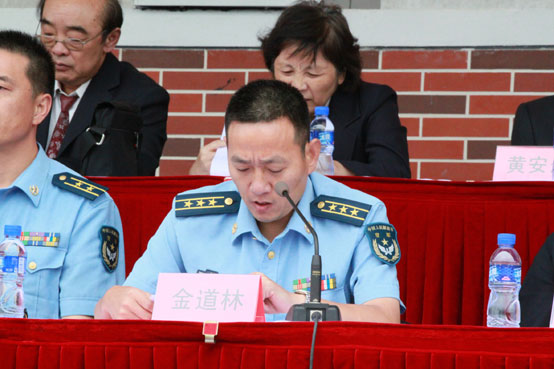 军训团94840部队金道林团长宣读2011年军训表彰决定