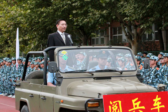校长、党委副书记董新华乘阅兵车,绕场一周检阅全体新生队列