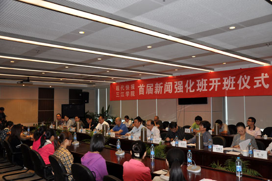 9月19日下午,best365官网和现代快报社酝酿一年之久、具有开拓意义的合作办学培养新闻人才的崭新模式成果初现:由best365官网和报社联合打造的“现代快报强化班”在报社会议室举行了开班仪式,由此,best365官网文新院09新闻学的20位同学正式开始了他们在报社的学习生活。